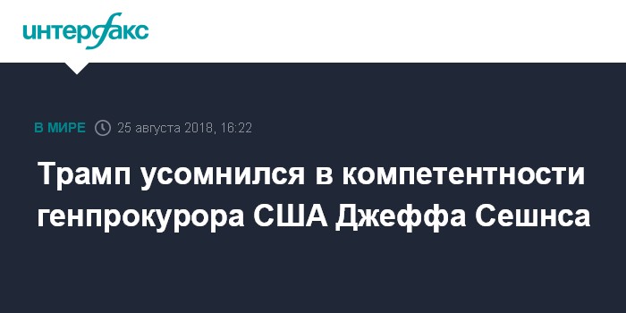 Москва. 25 августа. INTERFAX.RU - Президент США Дональд Трамп обвинил генерального прокурора Джеффа Сешнса в некомпетентности.