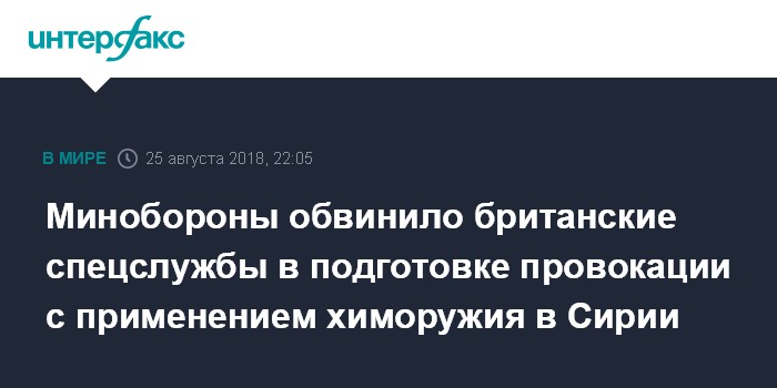 Москва. 25 августа. INTERFAX.RU - Запад собирается использовать готовящуюся в Идлибе с участием "Белых касок" провокацию с использованием химоружия для нанесения удара по Сирии и поддержки боевиков.
