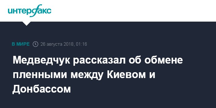 Москва. 26 августа. INTERFAX.RU - Донецк и Луганск выступает за обмен с Киевом удерживаемых лиц по формуле "всех на всех", местонахождение которых установлено, осужденные в РФ украинцы в рамках переговоров в Минске обмену не подлежат, заявил лидер организации "Украинский выбор" Виктор Медведчук.