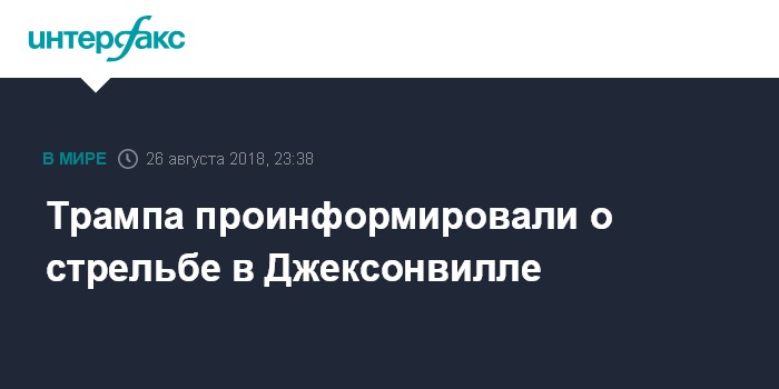 Москва. 26 августа. INTERFAX.RU - Президент США Дональд Трамп проинформирован о стрельбе в центре Джексонвилла во Флориде, заявила в воскресенье американским журналистам представитель Белого дома Сара Сандерс.
