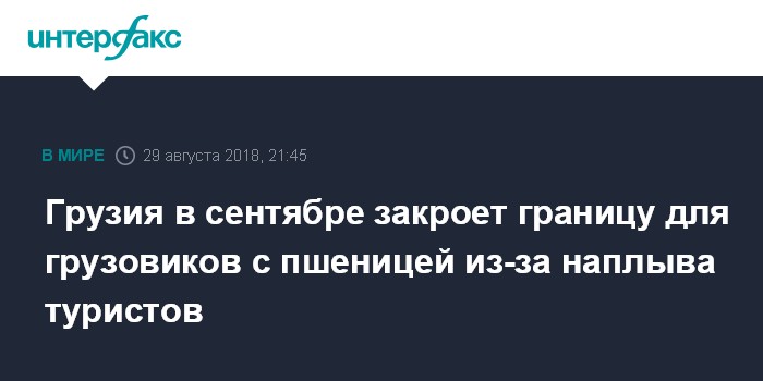 "В этом году в Грузии беспрецедентное количество туристов, многие из которых пересекают границу на легковых автомобилях через таможенно-пропускной пункт "Верхний Ларс" (на российско-грузинской границе - ИФ), в то время как там возникают длинные очереди трейлеров, в основном с пшеницей, что затрудняет передвижение туристов", - заявил Мачавариани журналистам в среду.