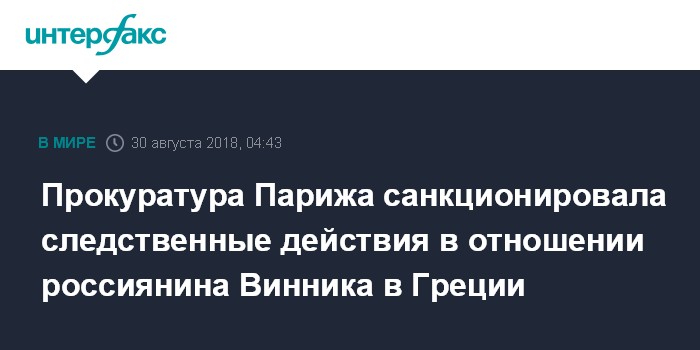 Прокуратура Парижа санкционировала следственные действия в отношении россиянина Винника в Греции