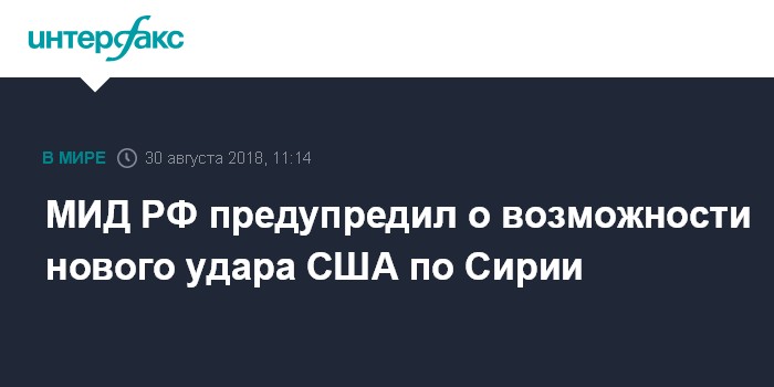 Москва. 30 августа. INTERFAX.RU - Приготовления американских вооруженных сил в регионе Ближнего Востока говорят о том, что новые ракетные удары по Сирии не исключены, заявила официальный представитель МИД РФ Мария Захарова.