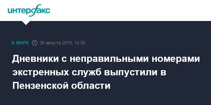 В частности, по данным местных СМИ, на шестой странице "Дневника школьника Пензенской области" были напечатаны неверные телефоны экстренных служб.