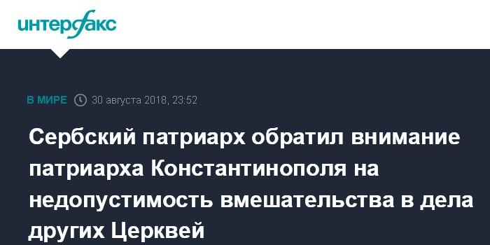 В сообщении агентства отмечается, что основанием для написания письма стало беспокойство Сербского Синода и патриарха о единстве Православной церкви в связи с вмешательством константинопольских иерархов в "украинский вопрос".