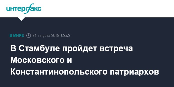 Москва. 31 августа. INTERFAX.RU - Патриарх Московский и всея Руси Кирилл встретится в пятницу утром в Стамбуле с патриархом Константинопольским Варфоломеем.