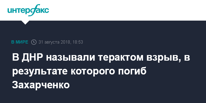 В пятницу 31 августа источник "Интерфакса" в аппарате главы ДНР сообщил, что Захарченко получил смертельное ранение при взрыве в кафе "Сепар" в центре Донецка.
