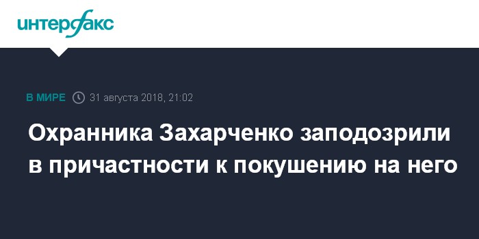 Москва. 31 августа. INTERFAX.RU - Один из охранников главы ДНР Александра Захарченко, убитого взрывом в кафе в центре Донецка, мог иметь отношение к организации покушения, сообщил "Интерфаксу" источник в силовых структурах ДНР.