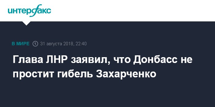 Москва. 31 августа. INTERFAX.RU - Исполняющий обязанности главы самопровозглашенной Луганской народной республики Леонид Пасечник выразил соболезнования в связи с гибелью главы Донецкой народной республики Александра Захарченко.