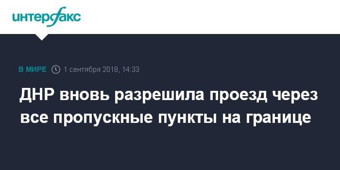 Москва. 1 сентября. INTERFAX.RU - Самопровозглашенная Донецкая народная республика открыла проезд через границу, сообщил "Интерфаксу" один из депутатов Народного совета ДНР.