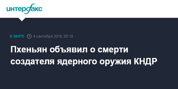 Москва. 4 сентября. INTERFAX.RU - В КНДР в возрасте 89 лет от панцитопении (заболевание крови) скончался ведущий северокорейский ученый-ядерщик Ю Кью Чжан, сообщило Центральное телеграфное агентство Кореи (ЦТАК).