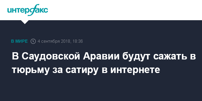 Москва. 4 сентября. INTERFAX.RU - В Саудовской Аравии пользователей интернета, распространяющих "подрывающий общественный порядок" контент, отныне могут наказывать лишением свободы сроком до пяти лет и крупным штрафом, сообщает во вторник агентство Bloomberg.