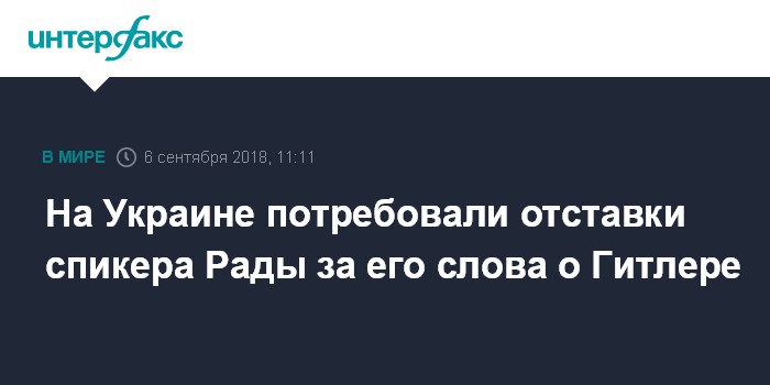 На Украине потребовали отставки спикера Рады за его слова о Гитлере