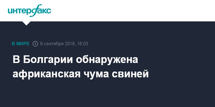 Москва. 6 сентября. INTERFAX.RU - Африканская чума свиней (АЧС) обнаружена в Болгарии, сообщает Россельхознадзор со ссылкой на национальное агентство по безопасности пищевых продуктов (BNSA).