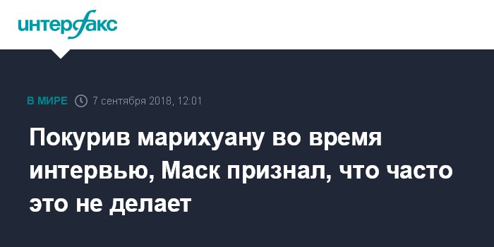 Покурив марихуану во время интервью, Маск признал, что часто это не делает