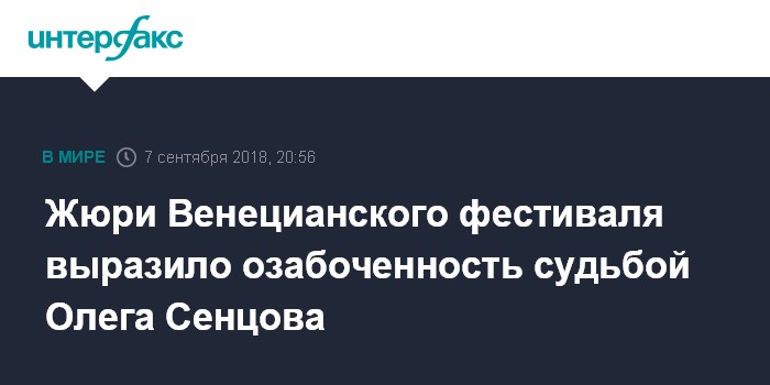 "Жюри 75-го Венецианского Кинофестиваля (...) выражает сильную озабоченность физическим состоянием Олега Сенцова, осужденного на 20 лет тюрьмы", - говорится в пресс-релизе жюри, распространенном в пятницу.