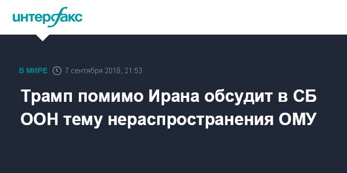 Ранее постпред США при ООН Никки Хейли объявила о планах провести 26 сентября заседание СБ ООН под председательством Трампа, посвященное иранскому вопросу.