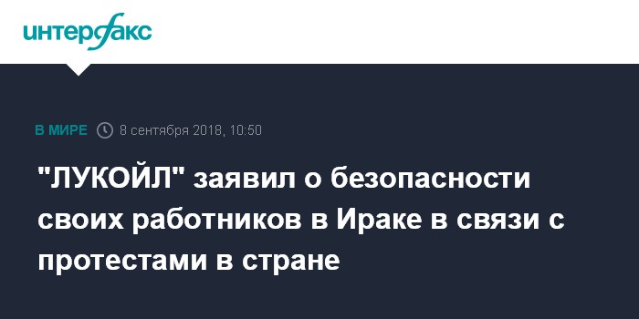 "ЛУКОЙЛ" заявил о безопасности своих работников в Ираке в связи с протестами в стране