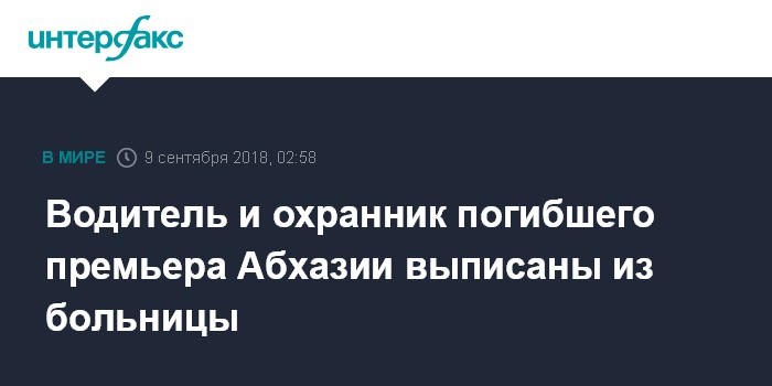 Москва. 9 сентября. INTERFAX.RU - Водитель и охранник премьер-министра Абхазии Геннадия Гагулия, которые находились с ним в машине во время ДТП, выписаны из Гудаутской больницы.