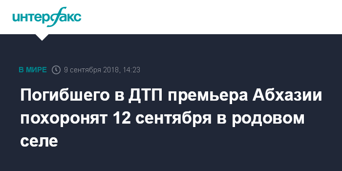 Погибшего в ДТП премьера Абхазии похоронят 12 сентября в родовом селе
