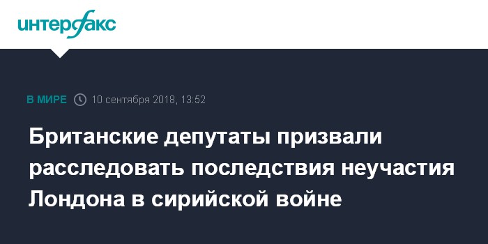 Москва. 10 сентября. INTERFAX.RU - Члены комитета по международным делам парламента Великобритании призывают провести независимое расследование последствий невмешательства Лондона в сирийскую гражданскую войну, сообщает в понедельник газета The Guardian.