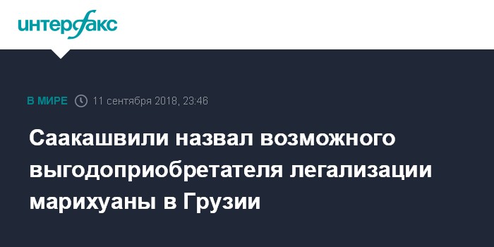 Москва. 11 сентября. INTERFAX.RU - Экс-президент Грузии Михаил Саакашвили считает, что идея производства марихуаны в стране с целью ее экспорта является инициативой миллиардера, основателя и председателя правящей партии "Грузинская мечта" Бидзины Иванишвили.