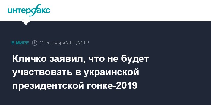 Кличко заявил, что не будет участвовать в украинской президентской гонке-2019