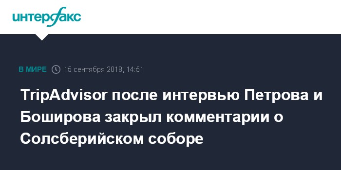 Москва. 15 сентября. INTERFAX.RU - Американский сайт путешествий TripAdvisor временно закрыл комментарии о соборе в Солсбери.