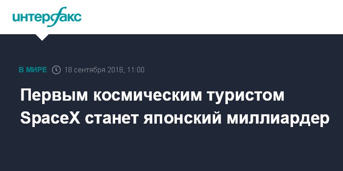 Москва. 18 сентября. INTERFAX.RU - Японский миллиардер, коллекционер искусства Юсаку Маэдзава (Yusaku Maezawa) стал первым космическим туристом, которого SpaceX отправит в полет вокруг Луны, сообщается в твиттере космической компании.