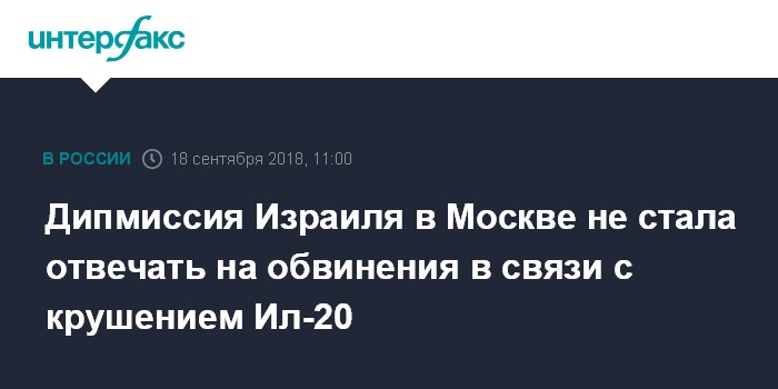 Москва. 18 сентября. INTERFAX.RU - В посольстве Израиля в Москве отказались комментировать заявления Минобороны РФ о причастности страны к гибели российских военных в Сирии.