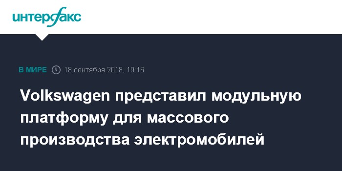Москва. 18 сентября. INTERFAX.RU - Германский автоконцерн Volkswagen представил новую технологическую платформу, которую планирует использовать для массового производства электромобилей.