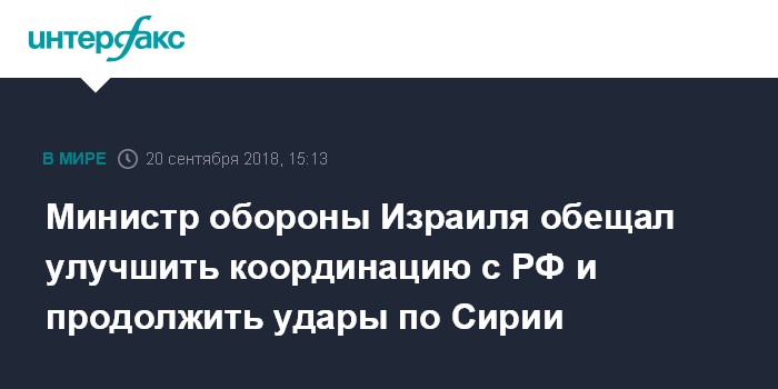 Москва. 20 сентября. INTERFAX.RU - Министр обороны Израиля Авигдор Либерман в четверг заявил, что его страна не прекратит нанесение ударов по Сирии, но приложит больше усилий для того, чтобы они "не создавали конфликтную ситуацию" с российскими вооруженными силами после инцидента с Ил-20.