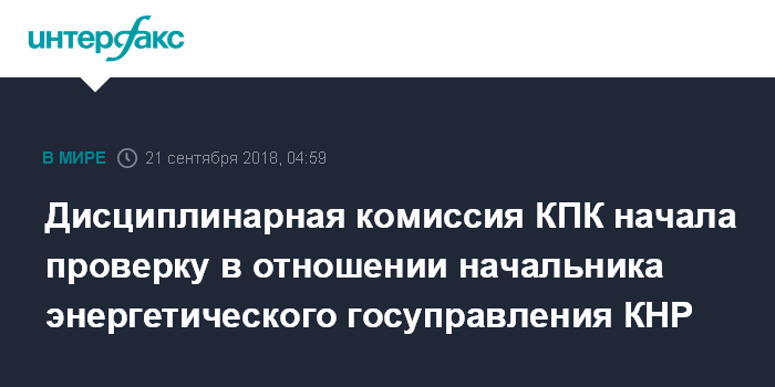 Дисциплинарная комиссия КПК начала проверку в отношении начальника энергетического госуправления КНР