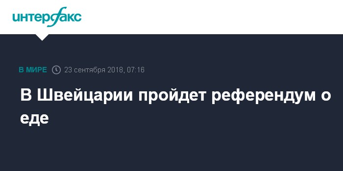 Москва. 23 сентября. INTERFAX.RU - Швейцарцы в воскресенье проголосуют на референдуме по вопросам регулирования продовольственного рынка, сообщила BBC News.