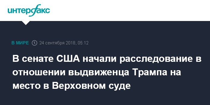 Москва. 24 сентября. INTERFAX.RU - Сенаторы от Демократической партии начали в американском сенате расследование в отношении кандидата на место в Верховном суде США Бретта Кавано, являющегося выдвиженцем президента Дональда Трампа, сообщил еженедельник The New Yorker.