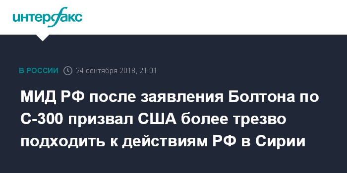 МИД РФ после заявления Болтона по С-300 призвал США более трезво подходить к действиям РФ в Сирии