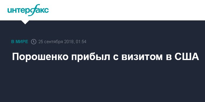 Москва. 25 сентября. INTERFAX.RU - Президент Украины Петр Порошенко прибыл с визитом в Соединенные Штаты Америки, где примет участие в 73-й сессии Генеральной Ассамблеи (ГА) Организации Объединенных Наций, сообщает пресс-служба его администрации президента.