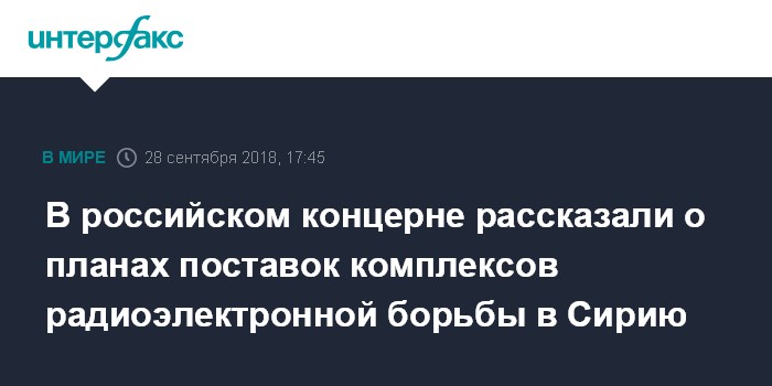 В российском концерне рассказали о планах поставок комплексов радиоэлектронной борьбы в Сирию