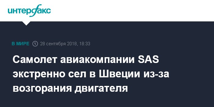 "Самолет авиакомпании SAS совершил экстренную посадку в городе Лулео из-за возгорания одного из двигателей во время полета. Воздушное судно приземлилось на одном рабочем двигателе. Никто из пассажиров не пострадал, их отправят в место назначения другим рейсом", - пишет портал.