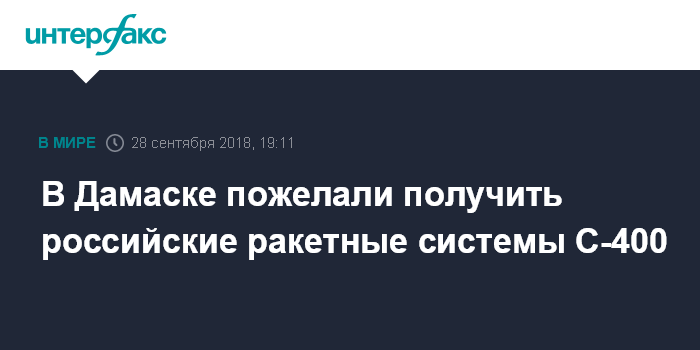 Москва. 28 сентября. INTERFAX.RU - Глава МИД Сирии Валид Муаллем заявил, что Сирия хотела бы получить от России и зенитную ракетную систему С-400.
