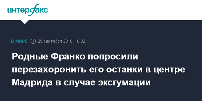 Ранее в правительстве Испании заявили, что в соответствии с принятым постановлением эксгумация останков Франко будет проведена с согласия его семьи или без него, при этом пообещали провести эту процедуру с уважением и достоинством.