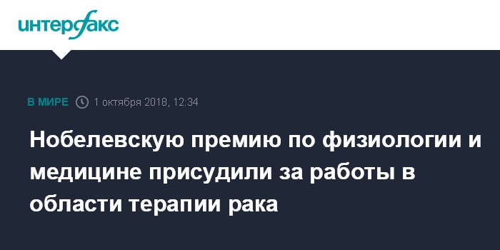 — The Nobel Prize (@NobelPrize) 1 октября 2018 г.