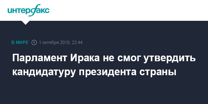 "Иракские парламентарии должны были собраться в Багдаде в понедельник вечером, чтобы выбрать нового президента республики. Однако на заседании не оказалось необходимого числа членов парламента", - сообщает канал на своем сайте. По его данным, изначально парламентское голосование было назначено на 3 октября. Затем его перенесли на два дня раньше - на 1 октября, чтобы у депутатов оставалось достаточно времени до 3 октября в том случае, если они не смогут утвердить кандидатуру на пост президента за одно заседание.