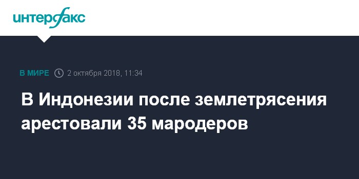 Москва. 2 октября. INTERFAX.RU - Полиция Индонезии арестовала более 30 человек, которых подозревают в ограблениях после того, как на прошлой неделе в районе индонезийского острова Сулавеси произошло сильное землетрясение, передают во вторник местные СМИ.