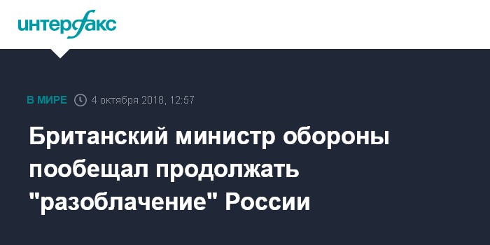 Британский министр обороны пообещал продолжать "разоблачение" России