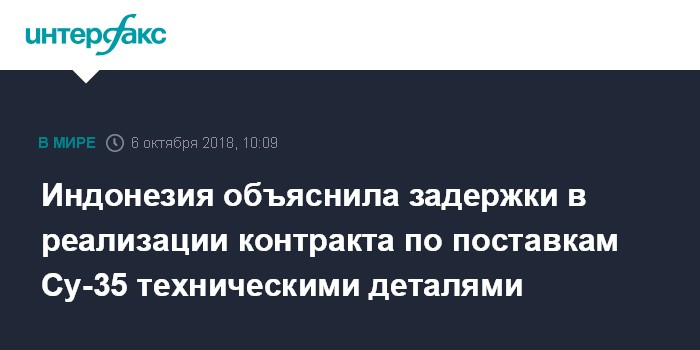Москва. 6 октября. INTERFAX.RU - Задержка в исполнении контракта на поставку Россией 11 самолетов Су-35 Индонезии не связана с антироссийскими санкциями США, заявил посол Индонезии в РФ Вахид Суприяди.
