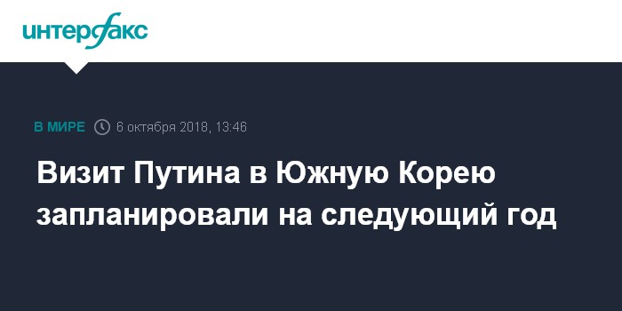 Москва. 6 октября. INTERFAX.RU - Визит президента России Владимира Путина в Южную Корею планируется в следующем году, сообщила спикер Совета Федерации Валентина Матвиенко.