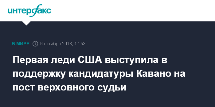Первая леди США выступила в поддержку кандидатуры Кавано на пост верховного судьи