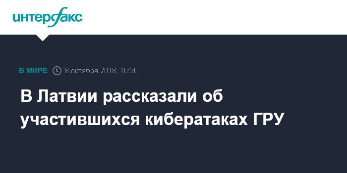 Москва. 8 октября. INTERFAX.RU - Главное разведывательное управление (ГРУ) Генштаба Вооруженных сил РФ в последние годы в целях шпионажа неоднократно совершало атаки на латвийские государственные структуры, в том числе внешнеполитического и оборонного секторов, заявили агентству BNS в Бюро по защите Сатверсме (Конституции, БЗС).