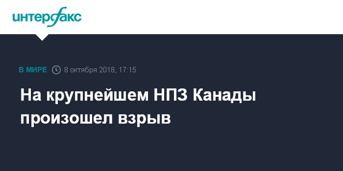 Москва. 8 октября. INTERFAX.RU - На крупнейшем НПЗ Канады в городе Сент-Джоне, провинция Нью-Брансуик, в понедельник прогремел взрыв, сообщает CBC News.